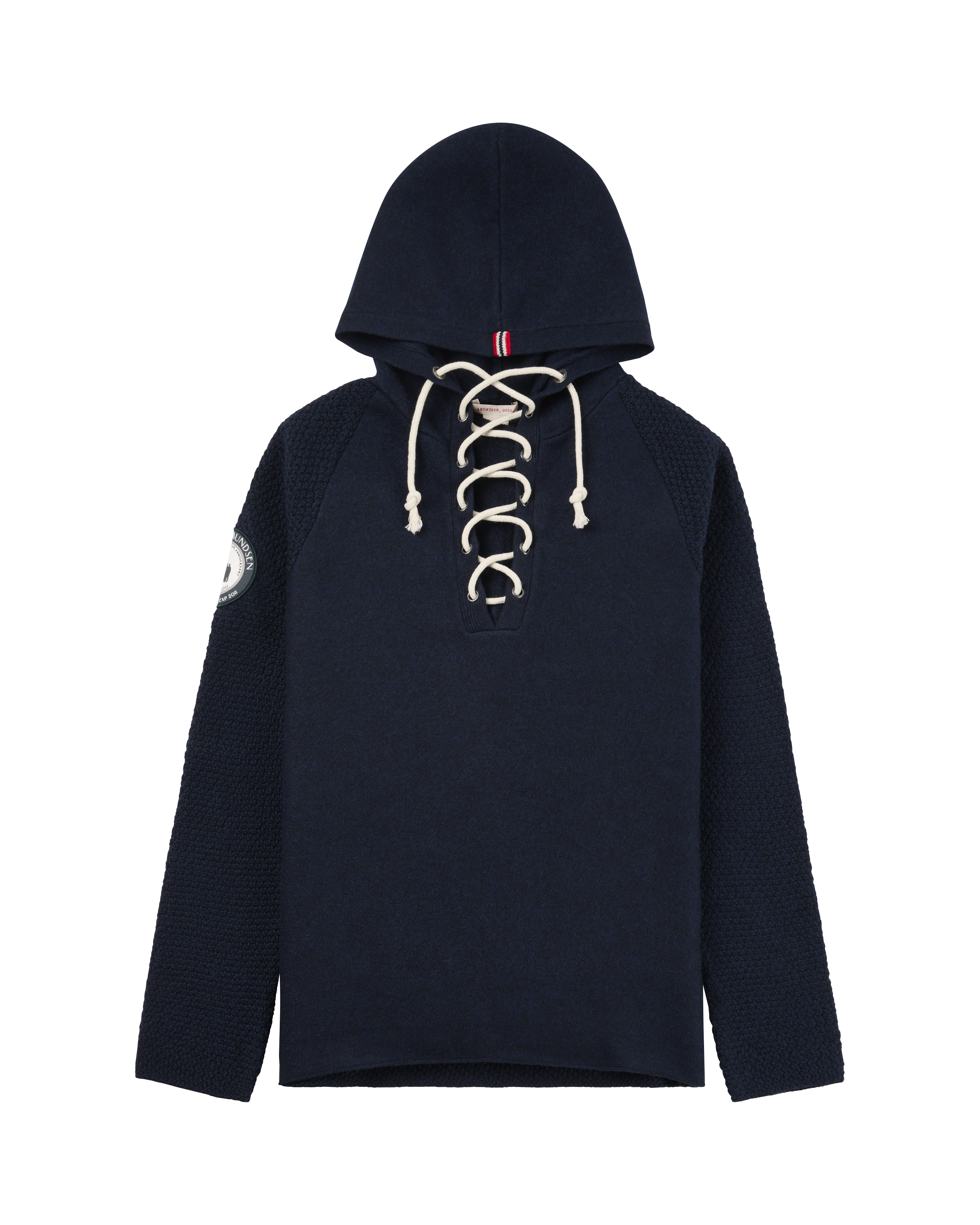 A traditional boiled hoodie crafted from 100% Merino wool using an ancient technique - knitted large then boiled to size for exceptional warmth, water resistance and wind protection.