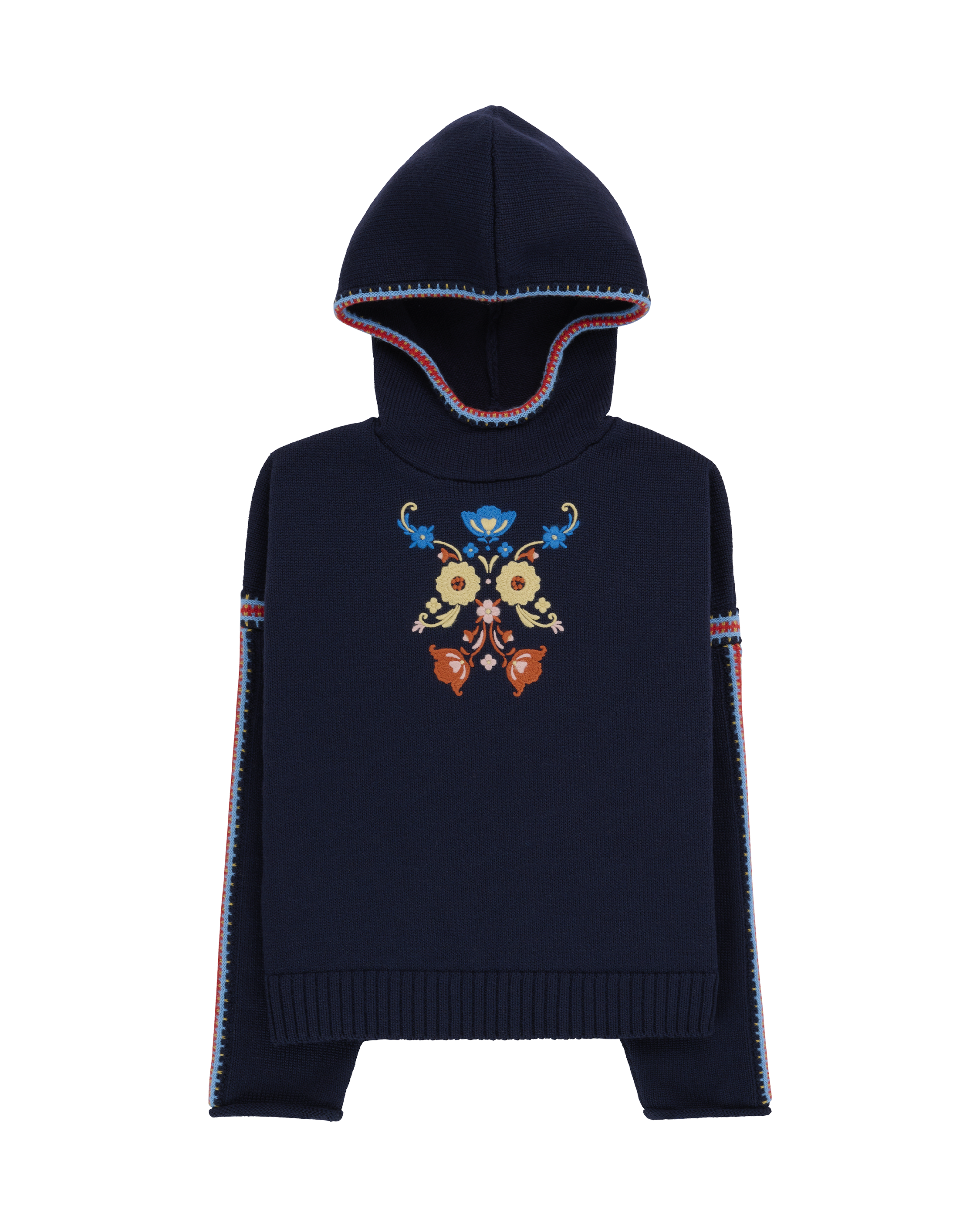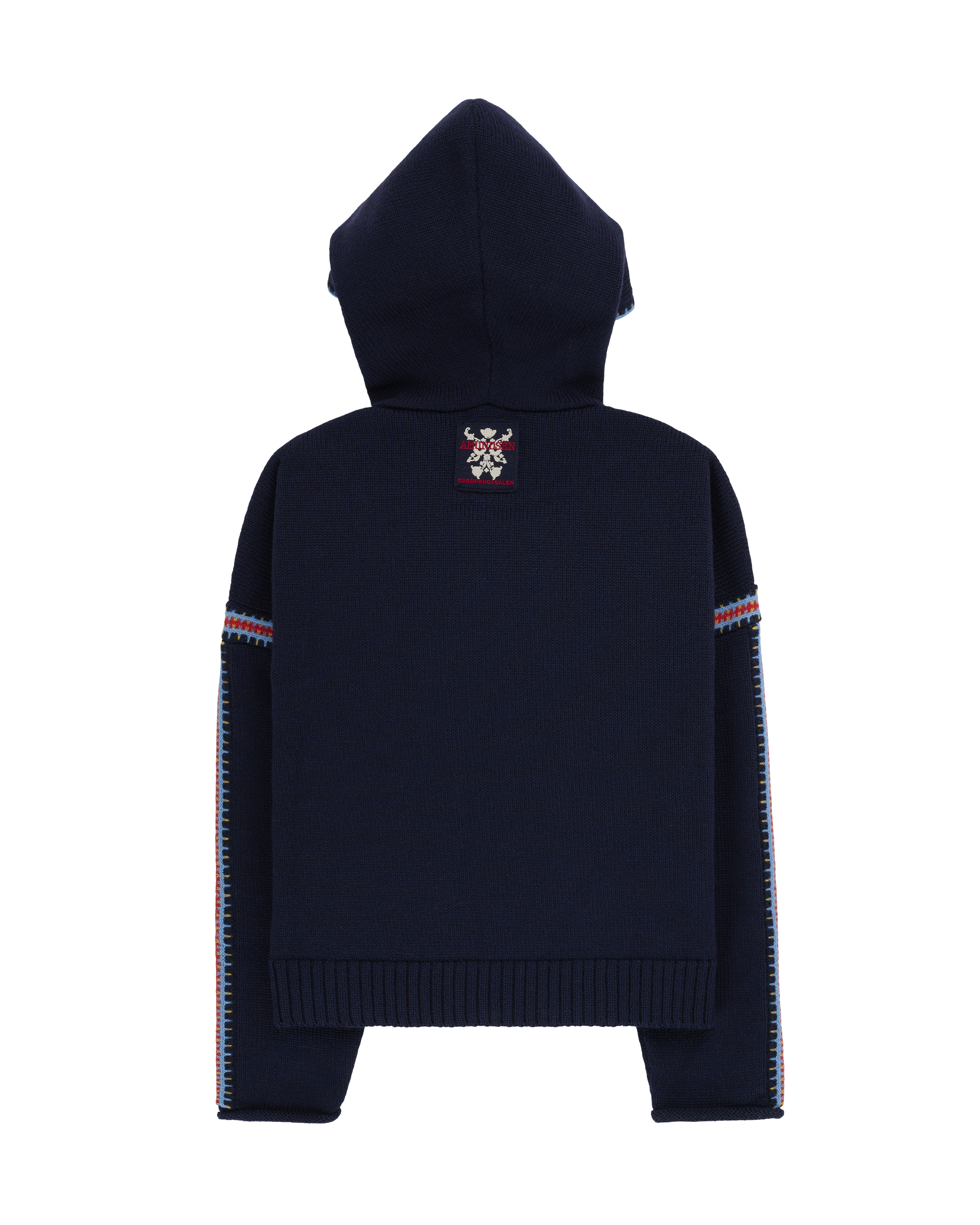 A celebration of Norwegian heritage and craftmanship in knitwear form. This hooded sweater is crafted from 100% Norwegian wool sourced from free-ranging sheep. Inspired by the traditional Norwegian Bunad, featuring embroidered motifs from the rich cultural landscapes of Telemark, Hallingdal, and Gudbrandsdalen. Combining timeless design with authentic detailing, the Gommo Hoodie is a true tribute to Norway’s enduring traditions.
